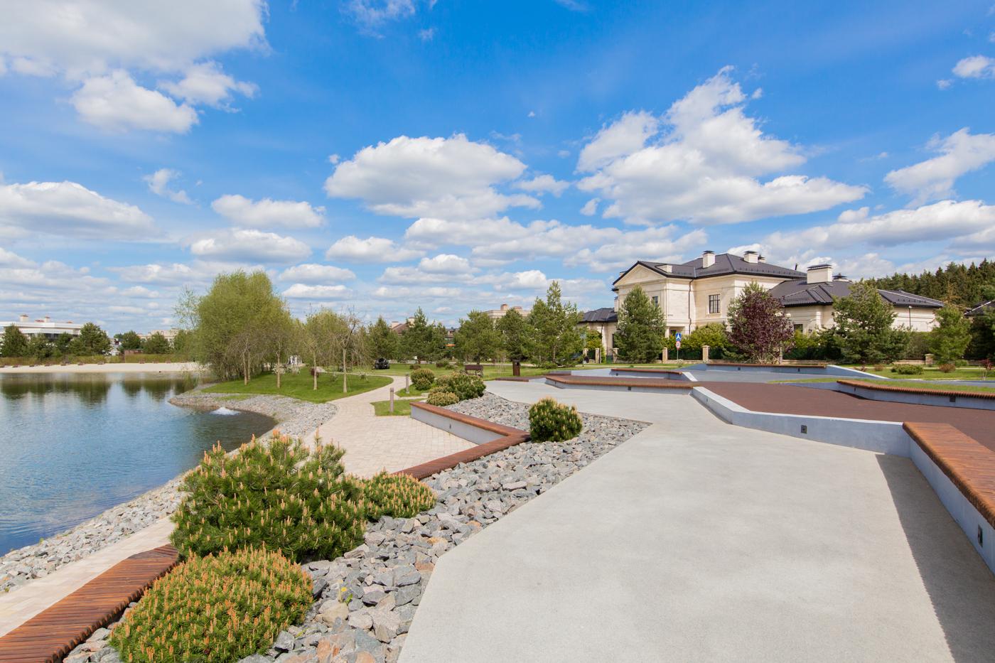 Собственное озеро площадью два гектара с обустроенным песчаным пляжем становится центром притяжения для семейного отдыха, а вековые сосны делают воздух в коттеджном поселке «Ренессанс Парк» в деревне Чесноково целебным, наполняя его фитонцидами.