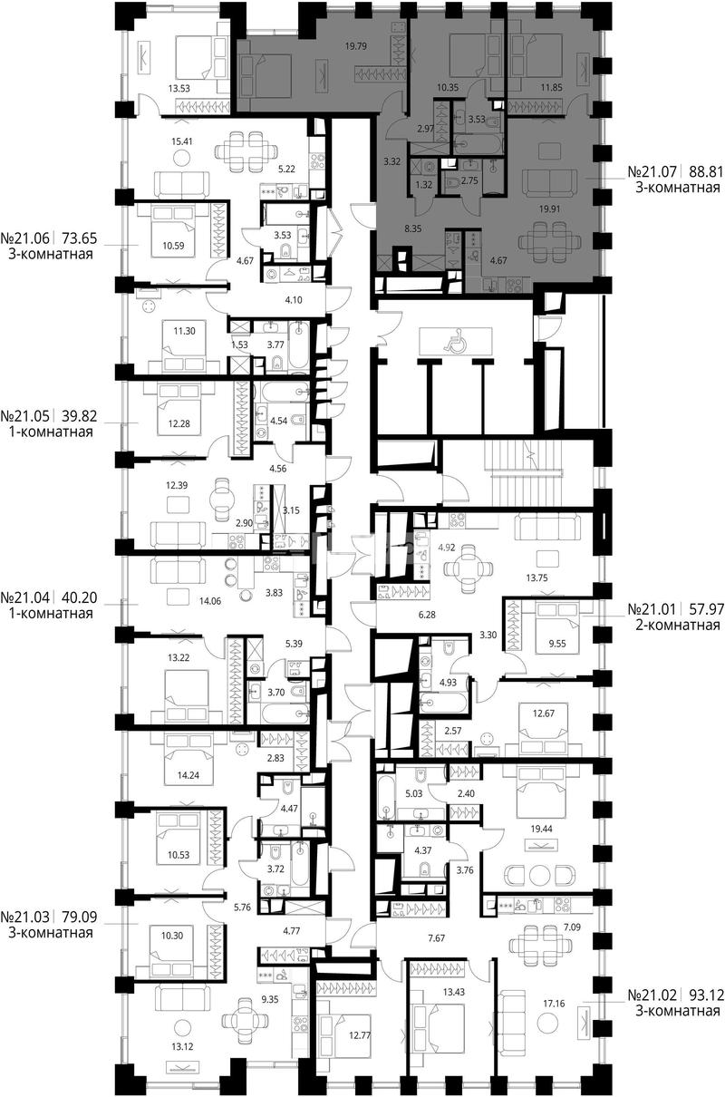 3-комн. квартира 89 м², 21 этаж - City Bay