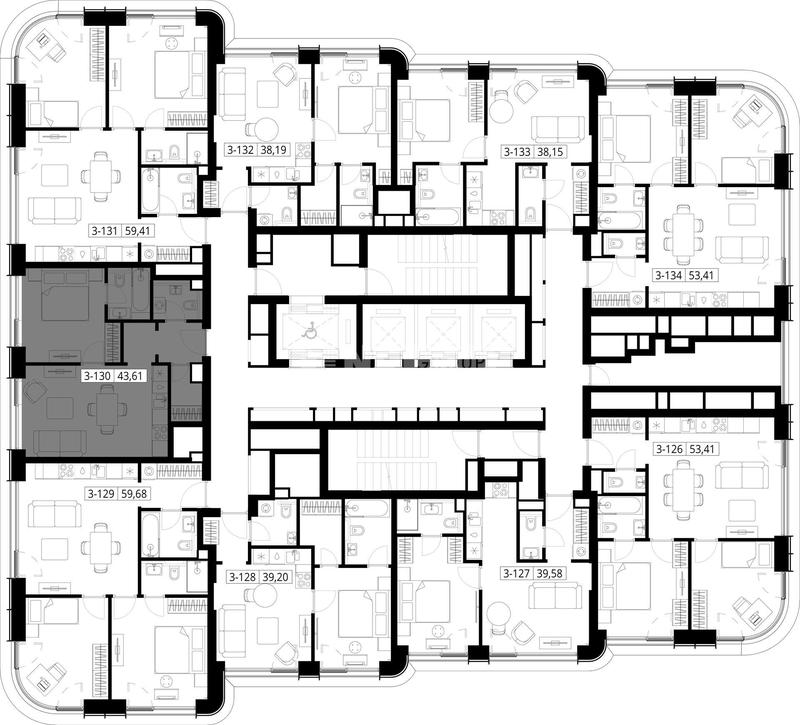 1-комн. квартира 43 м², 17 этаж - VEER