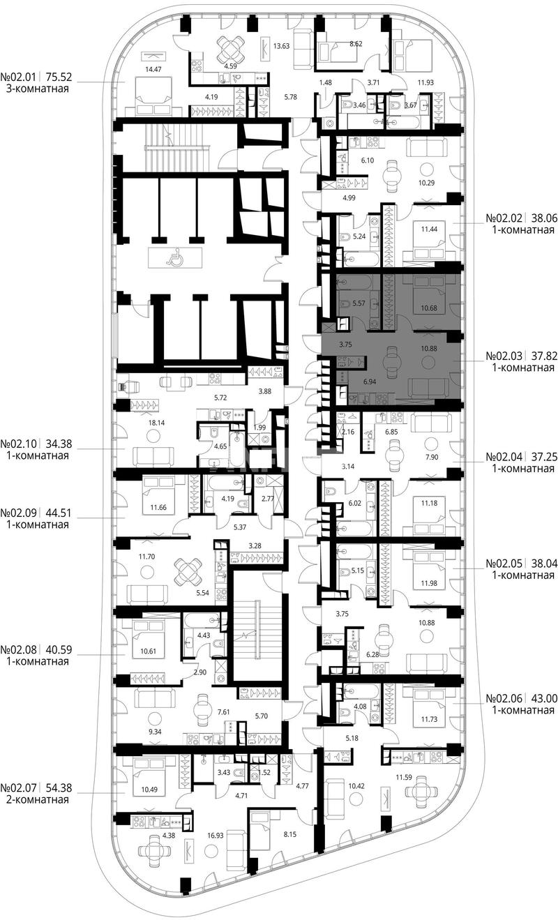 1-комн. квартира 40 м², 9 этаж - Life Варшавская