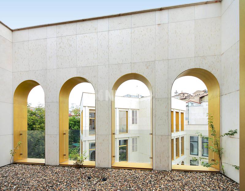 «Дом с Атлантами» – четырехэтажный особняк в стиле классицизм, построенный в 1882 году по проекту архитектора В. Н. Карнеева. Главный фасад украшают фигуры атлантов, поддерживающих балкон над центральным входом, львиные маски под карнизом и жезлы Меркурия на замковых камнях окон первого этажа. Балконы оформлены литыми ограждениями из чугуна. В связи с тем, что дом относится к объектам культурного наследия, внешний облик здания сохранен – восстановлена кирпичная кладка, историческая лепнина и цвет фасада. Однако внутреннее оснащение полностью обновлено – проведена замена перекрытий, подведен новый железобетонный фундамент, дом снабжен современной инженерией. Проведена реставрация исторических интерьеров мест общего пользования по проекту архитектурного бюро «Цимайло Ляшенко и Партнеры».