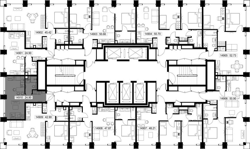 - Стильные лобби с панорамными окнами подчеркивают статус жилого комплекса.