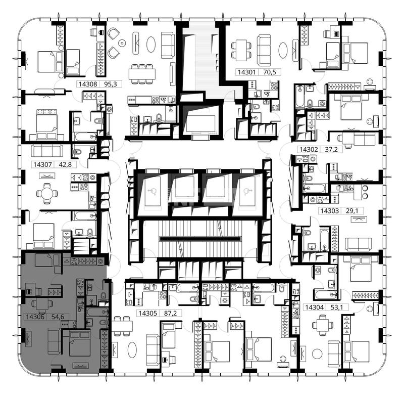. Квартира расположена на 12 этаже 53-этажного корпуса №1 в жилом комплексе бизнес-класса Level Мичуринский (компания Level Group).