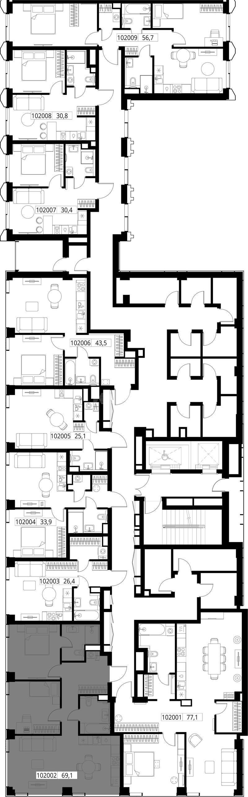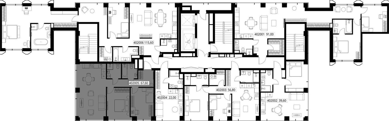 Внутренние дворы со сквозным проходом и общественные пространства соединяют воедино территорию, а богатая инфраструктура первых этажей делает жизнь в комплексе комфортной и разнообразной.