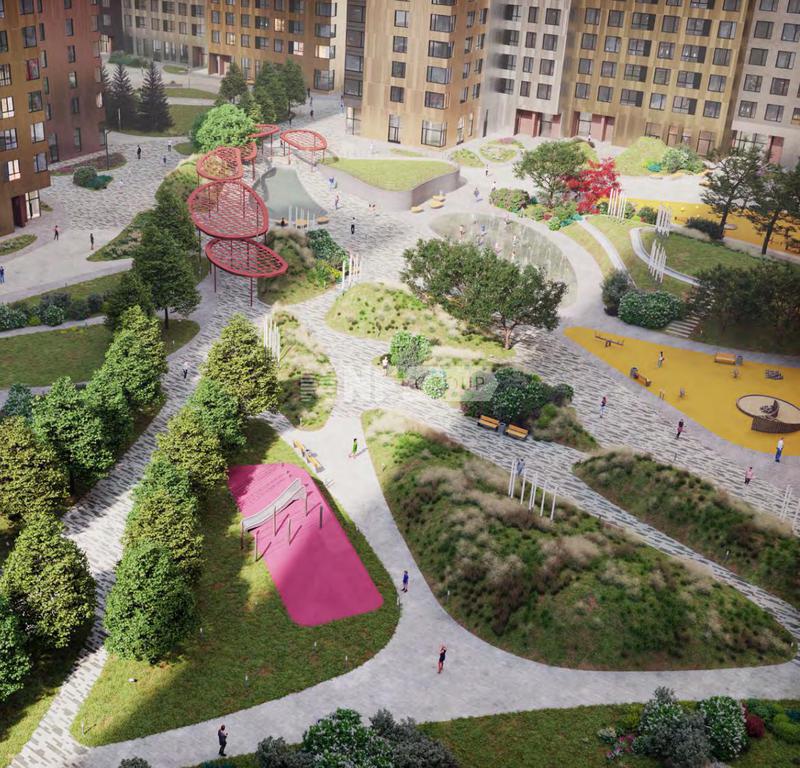 Дом Wellness включает спа-центр, бассейн, тренажерный зал. Ландшафт украшен элементами дикой природы: камни, мхи, хвойные деревья. Детские площадки из экологичных материалов. Предусмотрены воркаут-площадка и подземный паркинг.