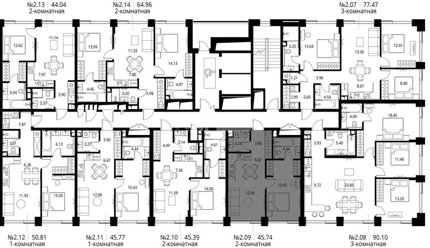 Планировки включают увеличенные кухни-гостиные, балконы, террасы и гардеробные. Квартиры с высокими потолками и отдельным входом со стороны парка — эксклюзив.