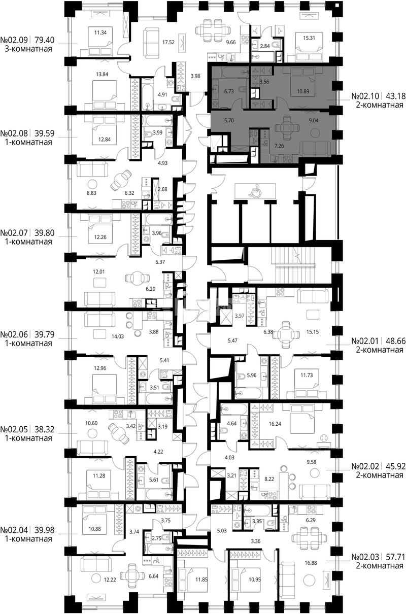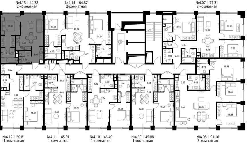 1-комн. квартира 44 м², 8 этаж - VEER