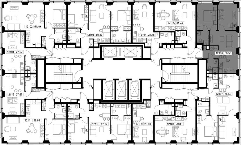 Продается 1-к квартира номер 709 общей площадью 42.4 кв.м. на 26-м этаже 40 этажного дома, корпус 2.3. Отделка WhiteBox.