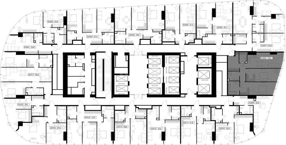 Жилищный фонд башни One будет представлен 1417 резиденциями — от компактных студий площадью 39 квадратных метров до эксклюзивных двухуровневых пентхаусов. Высота потолков от 3 до 4,5 метров создает ощущение воздушности даже в камерных пространствах, визуально расширяя границы дома.