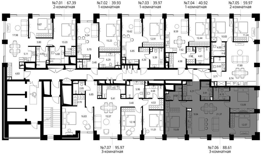 3-комн. квартира 89 м², 7 этаж - City Bay
