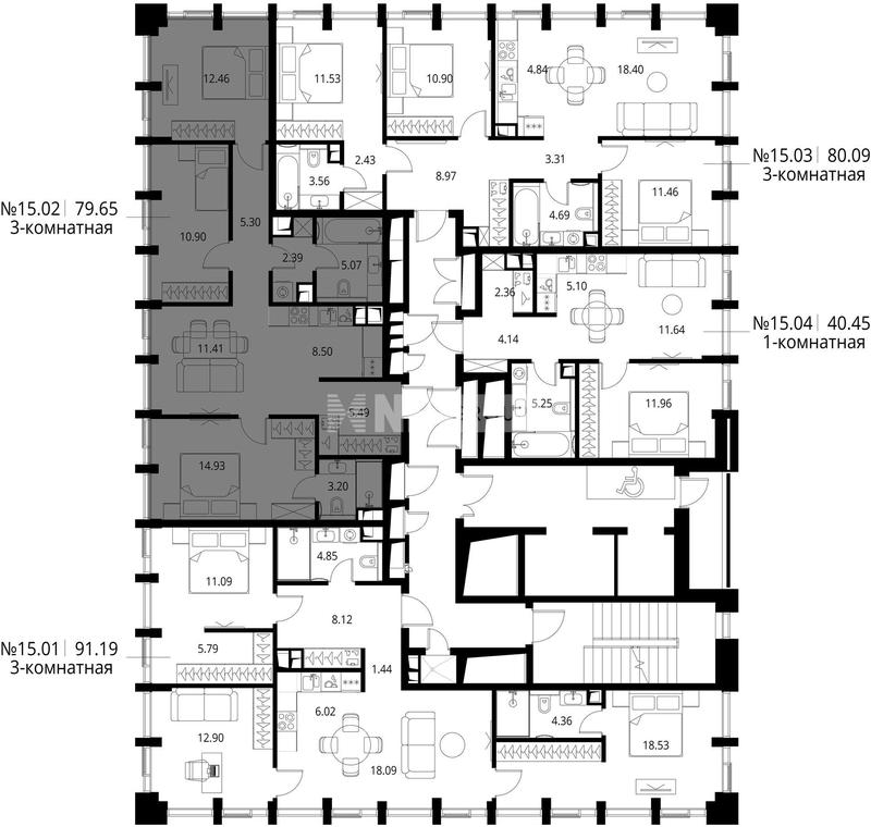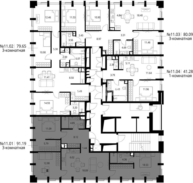 3-комн. квартира 91 м², 11 этаж - City Bay