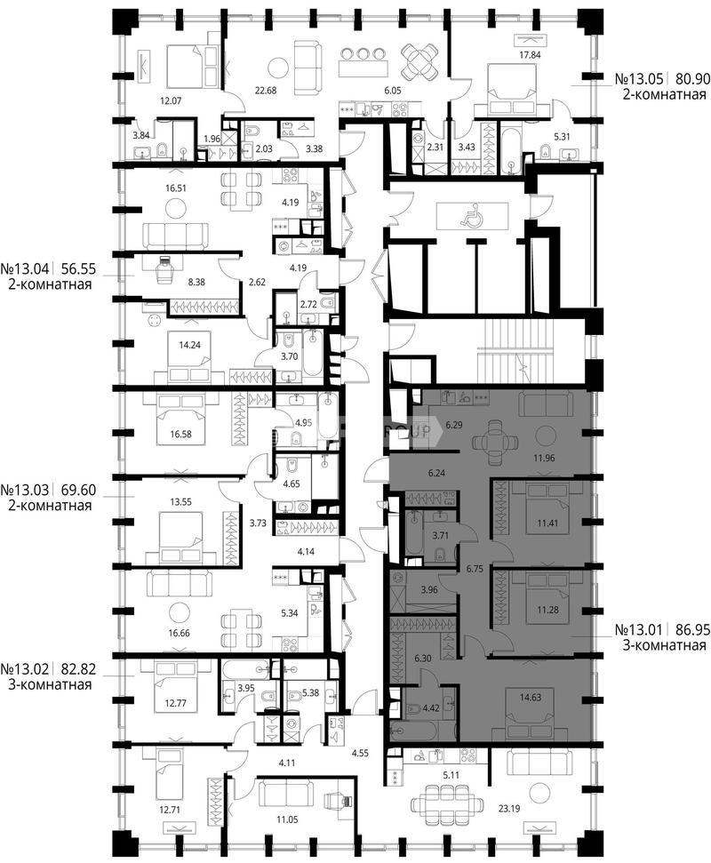 3-комн. квартира 87 м², 13 этаж - City Bay