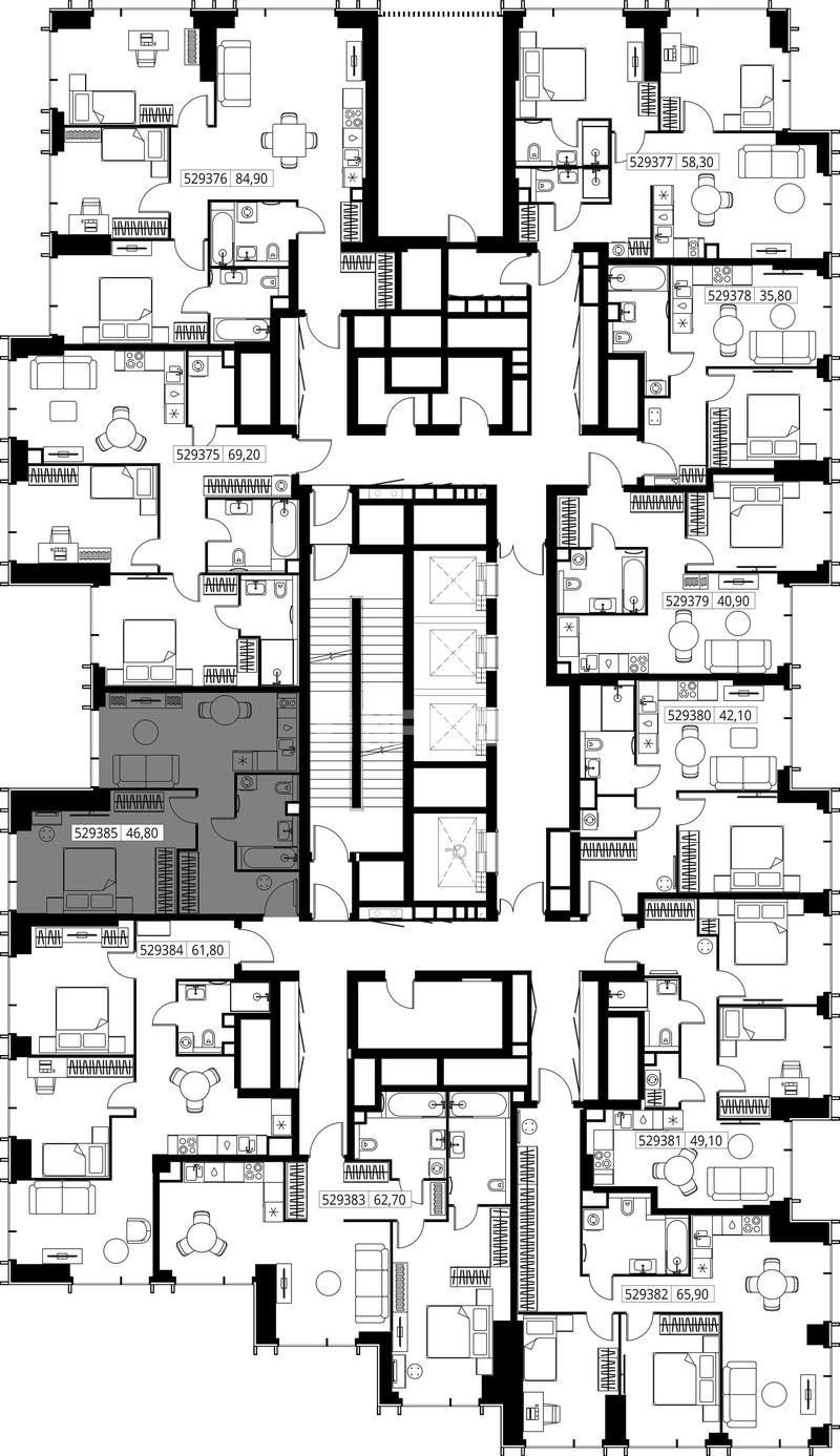 В ЖК VEER представлены 1 843 квартиры с различными вариантами планировок. Внимание уделено многообразию решений — более 200 типов: от функциональных студий до просторных шестикомнатных апартаментов. Площади варьируются от 20,6 до 130,7 кв. м, что позволяет выбрать жилье, соответствующее самым разным требованиям.