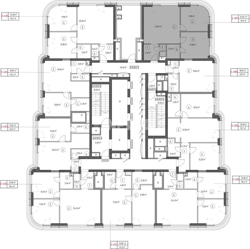 2-комн. квартира 44 м², 20 этаж - High Life