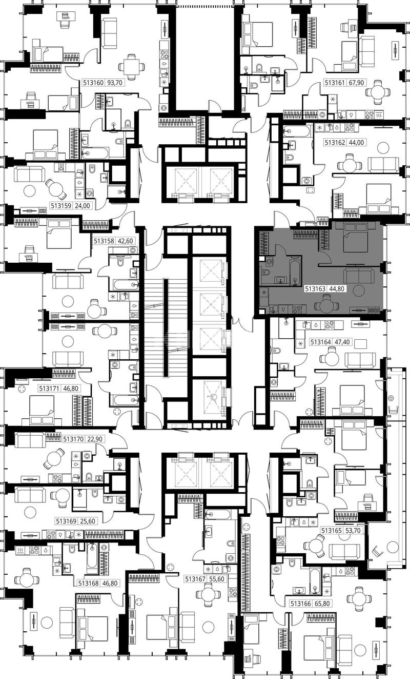 1-комн. квартира 44 м², 13 этаж - «ВЕЕР»