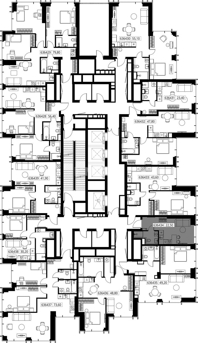 34.90 м² этаж 40 из 61 Без отделки 22 664 060 ₽