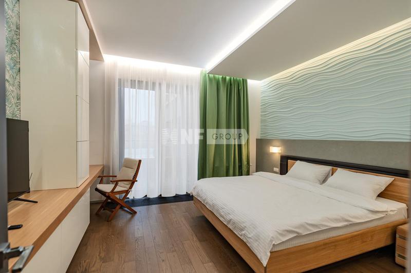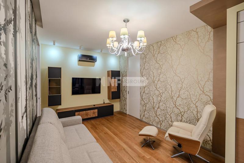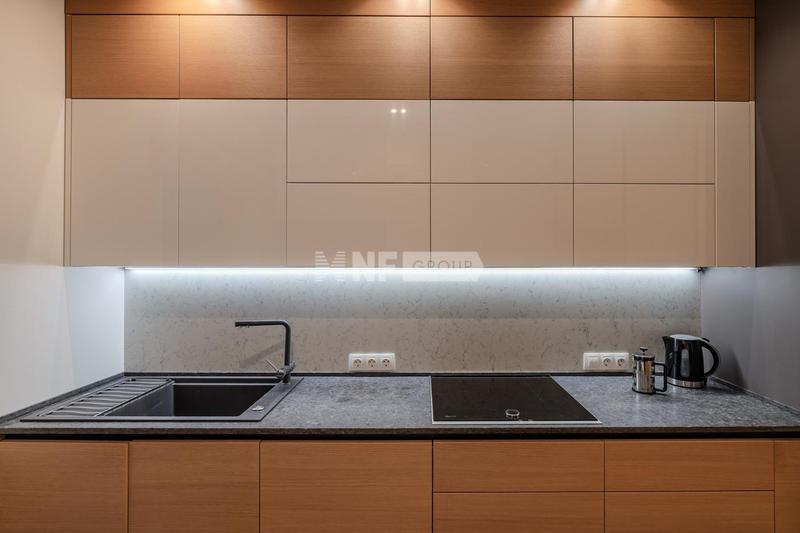 Дизайнерская квартира общей площадью 135,6 кв. м в элитном, охраняемом жилом комплексе. Квартира имеет два уровня, на первом уровне расположена: гостиная с камином, кухня, столовая зона, спальня со своей ванной комнатой, гардеробная, холл с санузлом и хозяйственным помещением. На втором этаже – кабинет с зоной отдыха и вторым светом. Ремонт выполнен по индивидуальному дизайн-проекту, из высококачественных, натуральных материалов.