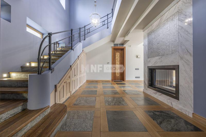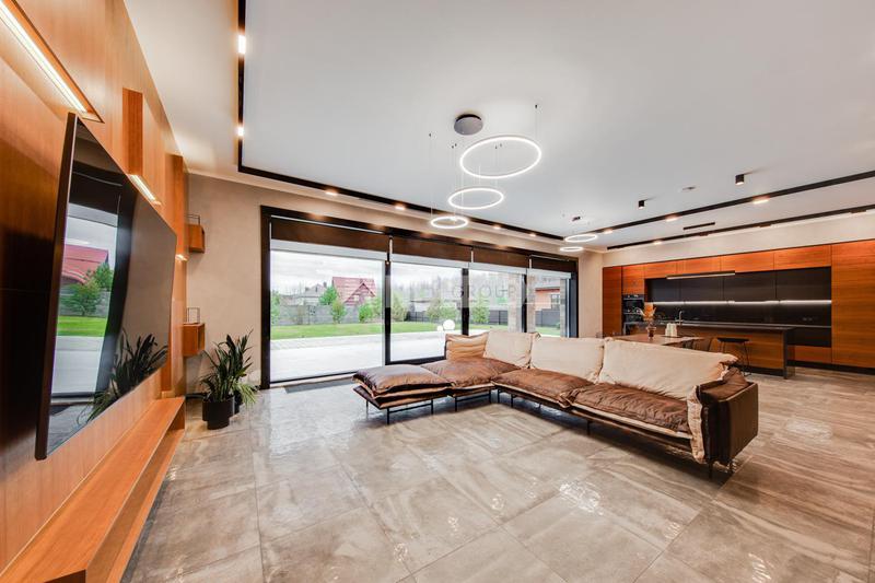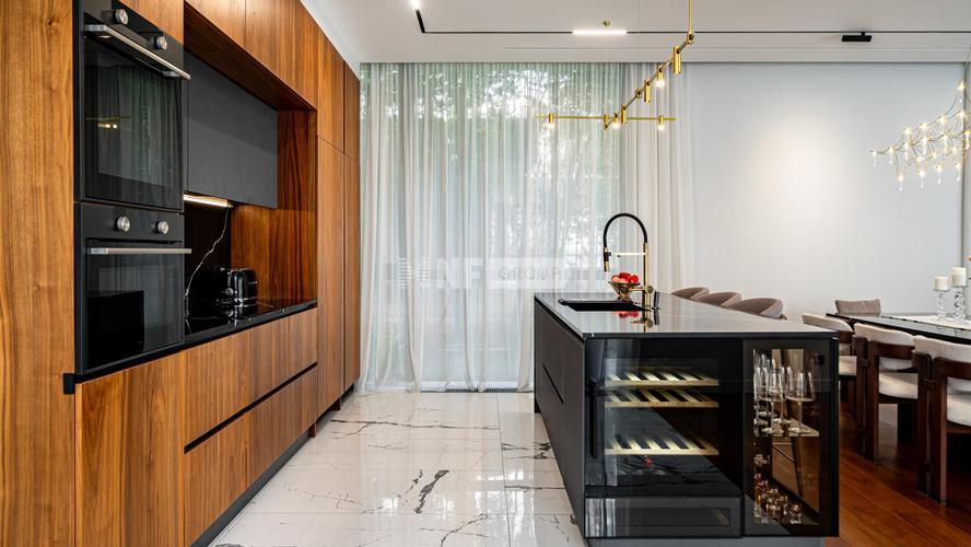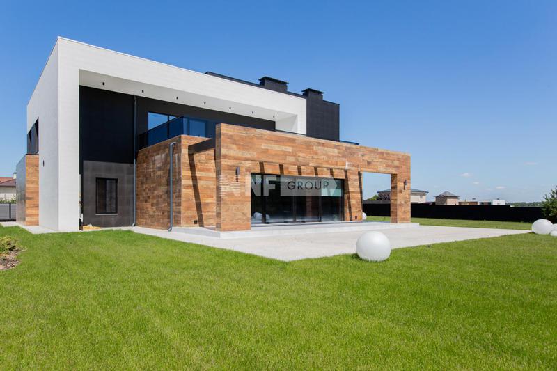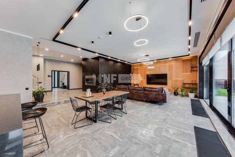 Загородный дом площадью 382м² построен на полевом участке 18,3 сотки в охраняемом КП "Монтевиль". Внутри спланировали 3 спальни со своими гардеробными и санузлами, кабинет, просторную кухню-столовую, гостиную с камином и выходом на крытую террасу. В контуре дома предусмотрены гараж на 2 машины и котельная с отдельным входом. Рядом расположен навес на 2 машины и отдельно стоящая баня с купелью и комнатой отдыха. На участке можно выполнить ландшафтный дизайн, высадить деревья и кустарники для создания приватной атмосферы и обустроить зону барбекю.