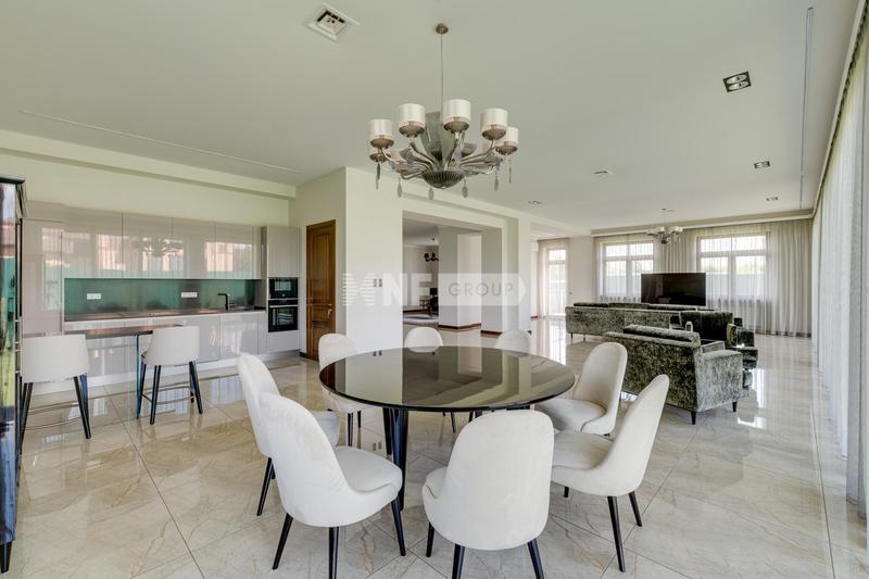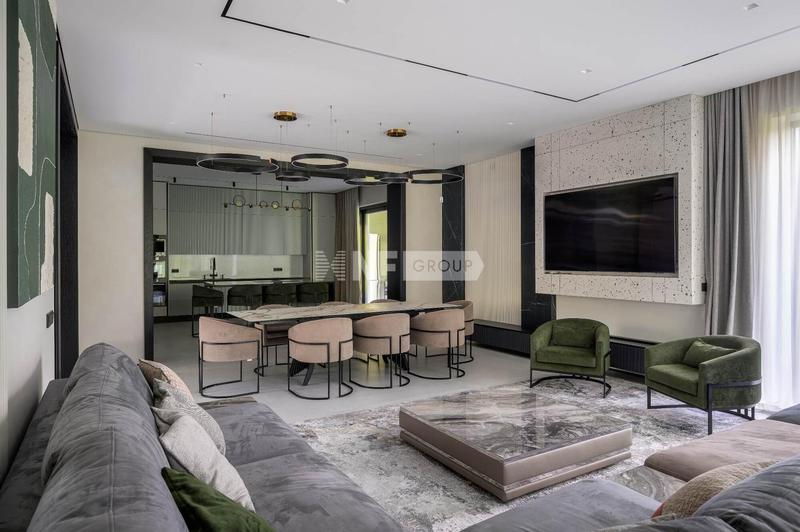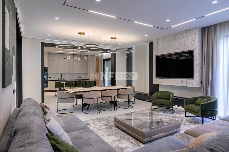 функциональные зоны: навес и гараж на 2 авто, кухня с островом MAEKAWA 11, гостиная (56 м²) со вторым светом и панорамным остеклением, столовая, гостевая спальня с санузлом и гардеробной, открытая терраса.