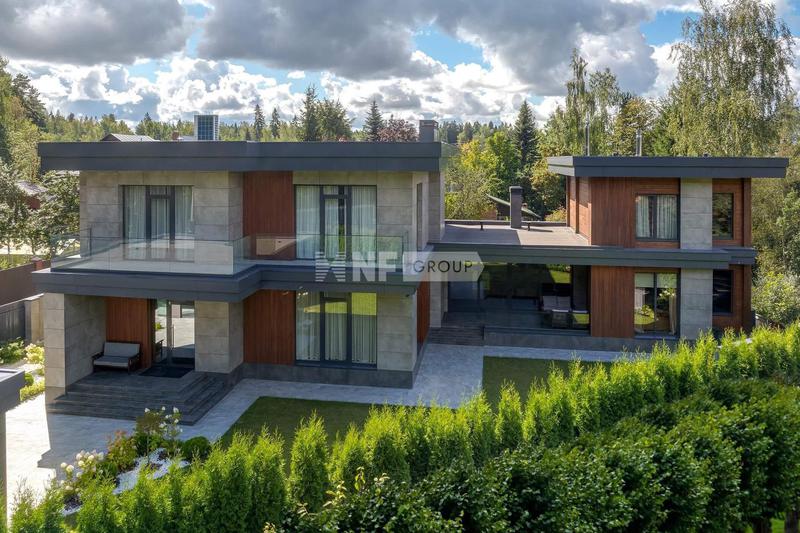 Экстерьер дома выполнен в современном стиле с продуманными архитектурными решениями.