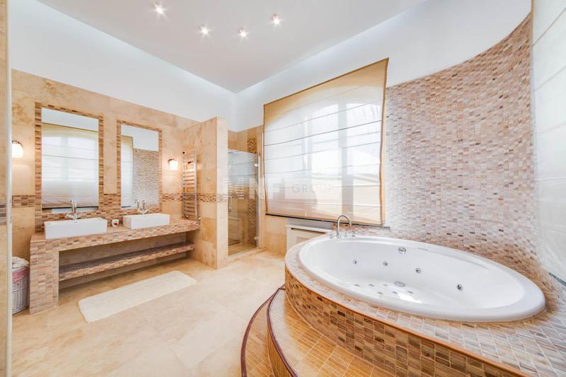 Территория благоустроена с особым вниманием к деталям: проложены удобные дорожки с покрытием из противоскользящего керамогранита, установлена современная система автоматического полива. Такой подход обеспечивает не только эстетическую привлекательность участка, но и существенно упрощает уход за зелёными насаждениями, позволяя владельцу наслаждаться красотой природы без лишних хлопот.