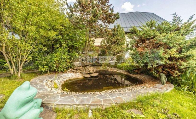 Дом примыкает к декоративному водоему поселка.