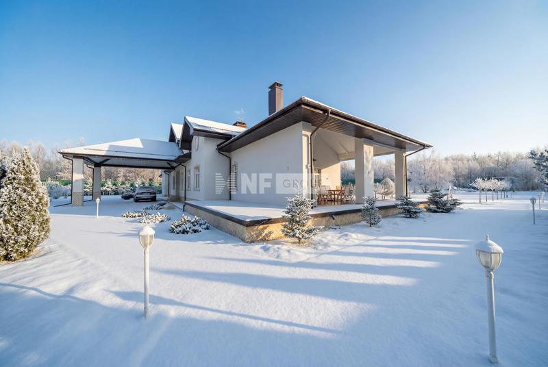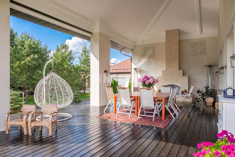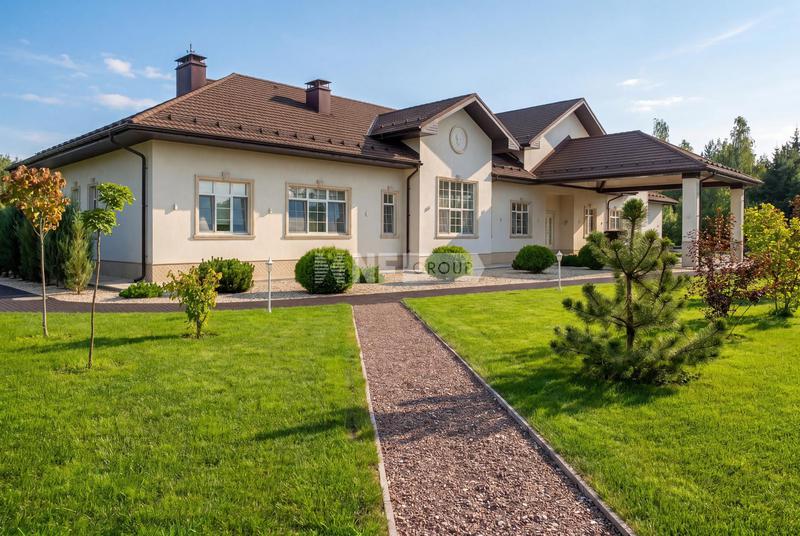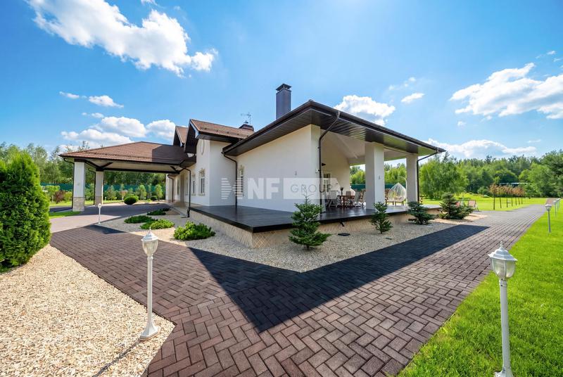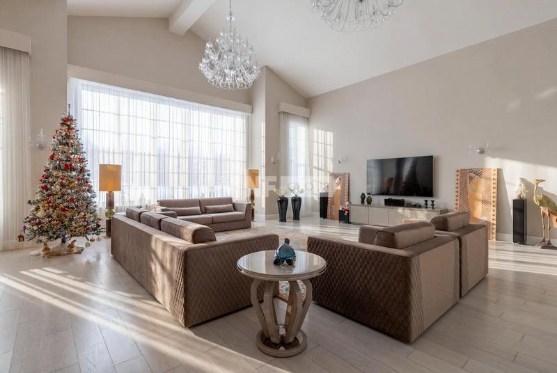 Участок, общей площадью 2150 кв м, включает в себя просторный светлый основной дом с панорамным остеклением, площадью 455 кв м и гостевой дом, общей площадью 411 кв м.
