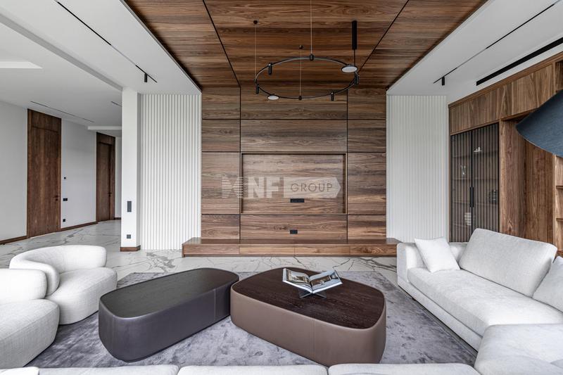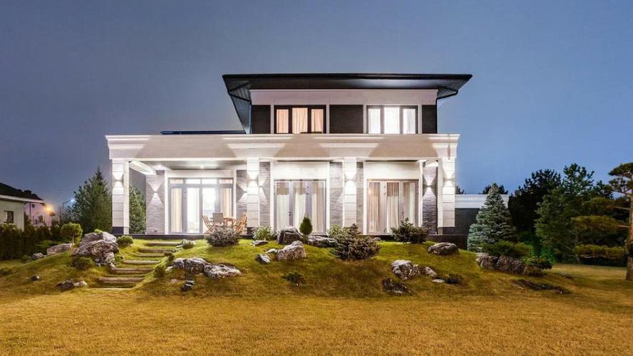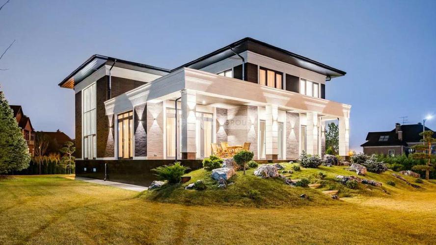 При строительстве и отделки дома использовались высококачественные и дорогие материалы. Фасад дома облицован натуральным камнем. Дом 4 этажа (полноценный цокольный этаж с окнами и мансардный этаж с высокими потолками до 6 метров).
