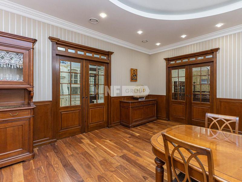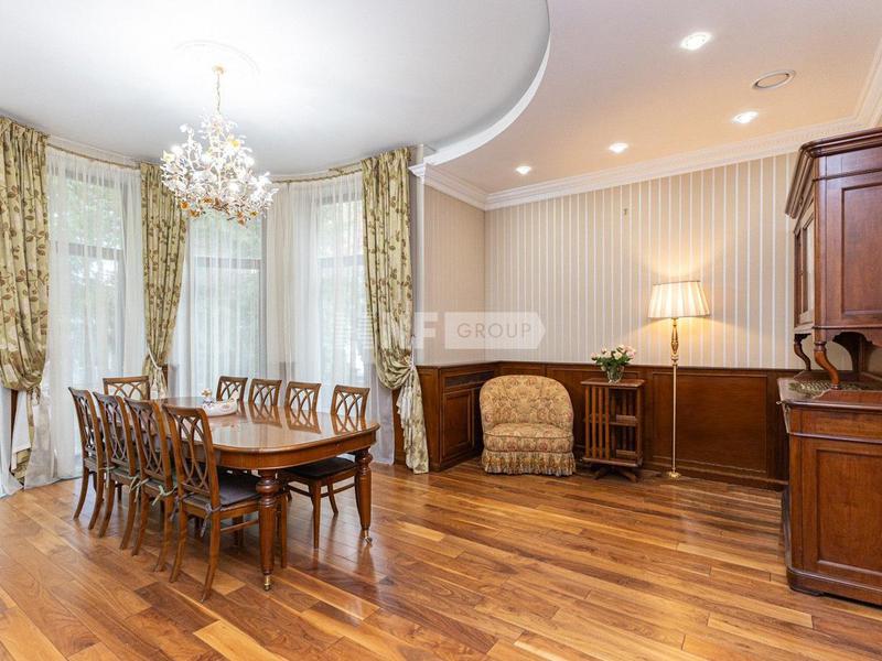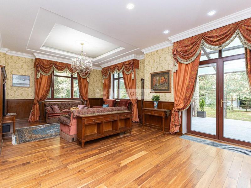 Просторная прихожая 5,7 м2, холл с монолитной лестницей и лифтом 12,3 м2, гардероб 7,2 м2, кухня, 23,8 м2 с отдельной кладовой 3,6 м2, столовая 37,0 м2, гостиный зал 42,9 м2 с камином, вторым светом, панорамными окнами и выходом на летнюю террасу 43,8 м2, гостевая спальня 19,3 м2. со своим с/у 7,9 м2, кабинет, обрамленный натуральным деревом 21,2 м2, гостевой с/у 10,5 м2.