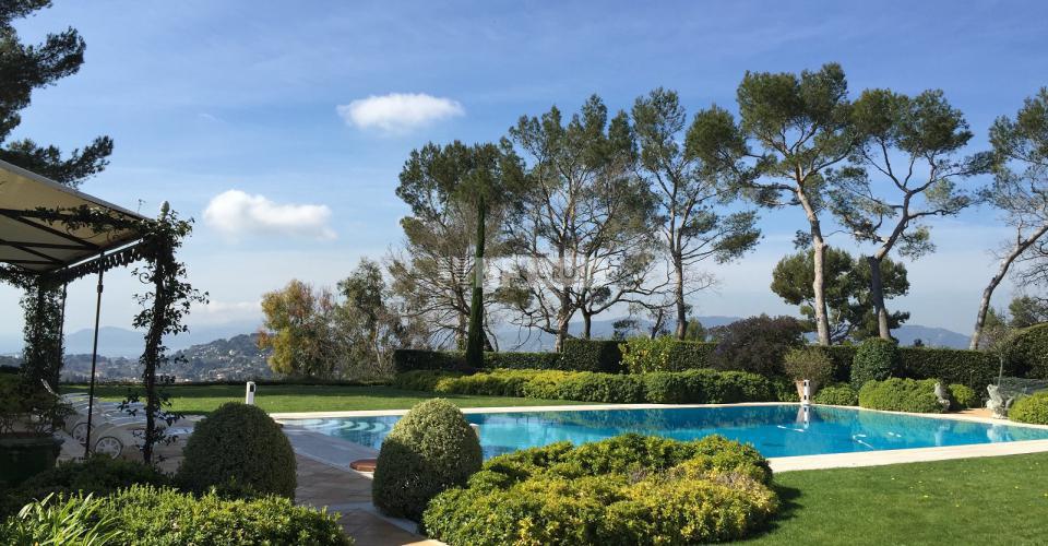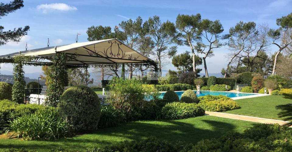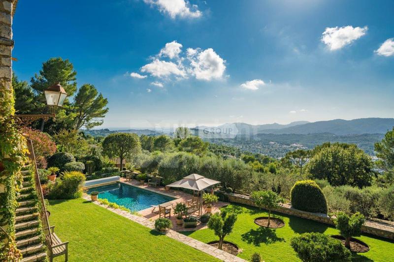 На территории с ландшафтными садами площадью 5 200 квадратных метров: гараж на две машины, террасы, домик у бассейна, джакузи и полноразмерный теннисный корт.